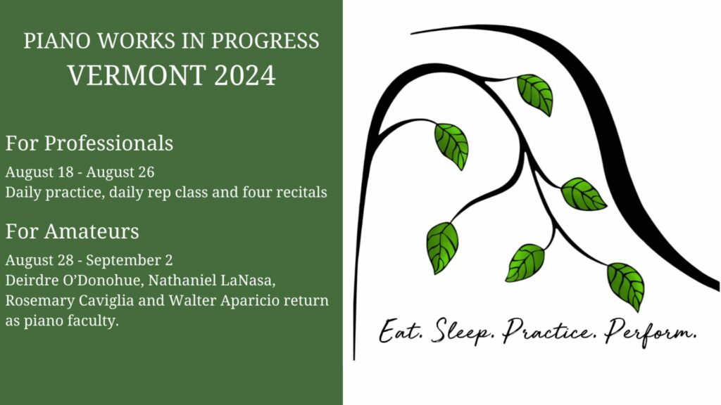 Recent engagements: Summer faculty, coach, and performer: Interharmony International Music Festival (Germany); Adamant Music School in Vermont; Summer Trios (Pennsylvania); Lectures/demonstrations: the Uniwersytet Muzyczny Fryderyka Chopina (Warsaw, Poland); the Piano Teachers’ Congress (Steinway Hall); the National Feis Ceoil Competition (Dublin); Adjudicator: Young Artists Festival in Seattle; the Royal Irish Academy of Music’s Piano Festival; the MTNA National Conference; Ithaca College of Music; Leschetizsky Association, NYSMTA, NJMTA, NHMTA, and external examiner for the Royal Irish Academy; Masterclasses at Interharmony International Music Festival (Germany); Yahama (NY); NYU, Queens College, New Hampshire, South Carolina; intensive week-long courses in piano technique and interpretation at the Gijon Conservatory in Spain; solo recitals in Weill Recital Hall, NYU; Convention Clinician for the South Carolina MTA.