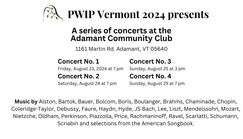 Adrienne is the founder and director of Wild Plums Recording Retreat in Vermont, a boutique festival devoted to the art of recording, and ScherziMusic Academy, offering online workshops in piano and composition.